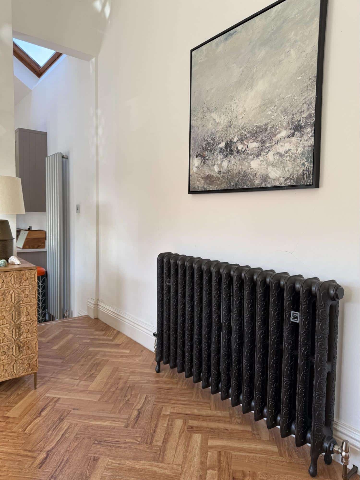 @justanothervictorianhouse – This entry from Ella caught our eye for the confident pairing of the parquet flooring with a statement ornate radiator. The radiator holds its own alongside the prominent artwork, demonstrating that you can make a radiator part of the decor, not just something to work around.