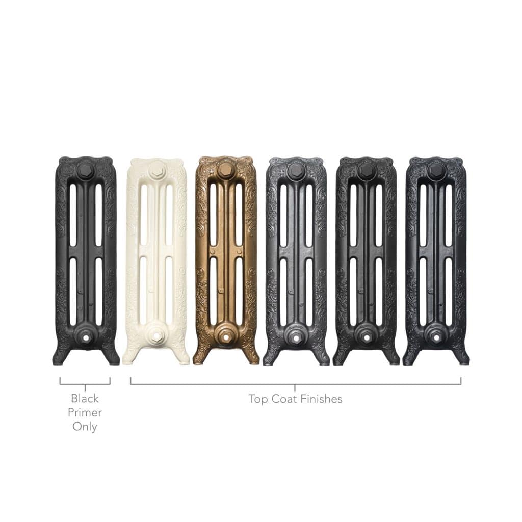 A stunning ornate design that combines the best of Victorian engineering with the latest modern heating innovation. The Balmoral is a 3 column design with intricate Baroque filigree designs spanning the columns, complete with tag ear detailing. This embossed style allows the beauty of cast iron to really come to the fore, making a bold statement in any room. As a 3 column design, this is the deepest of the ornate collection, with a height of 768mm and a depth of 245mm. Complete your selection with our range of 5 bespoke paint shades that are representative of authentic cast iron radiator colours. This ornate cast iron radiator would be the perfect focal point for a period property, or a bold statement piece for a modern home.