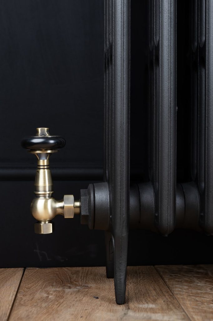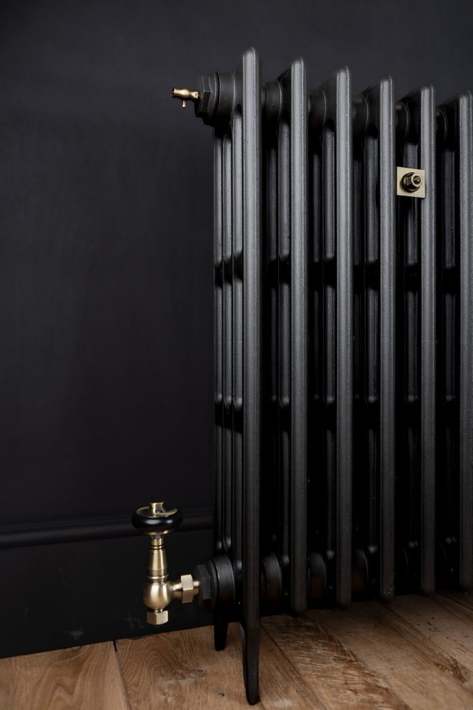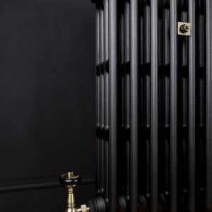 Traditional Victorian 4 Column 760mm Cast Iron Radiator 18 Section Matt Black with Antique Brass Accessories